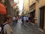 Suitably replenished we made our way to the Ponte Pretorian which did indeed prove to be a remarkably well preserved Roman gate and beneath its arches we found the city’s tourist information office. In the process we were met with the most picturesque view of the Via Ponte Pretorian – a lovely street given over to a combination of delicatessens, souvenir shops, cafe’s, artisan’s workshops and local linen stores. Making a mental note to return later, we crowded into the tourist information bureau.